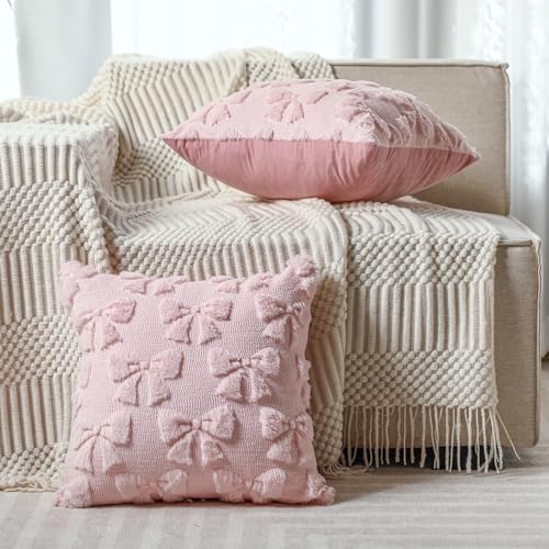 FUFRE 2 Stück Schleife Kissenbezug 45×45 cm, Kissenbezüge Schleifen 45×45 Deko Wohnzimmer Modern Kissenhülle Zimmer Deko Aesthetic Zierkissenbezüge Muttertag Dekokissen Geschenk für Mama (Rosa)