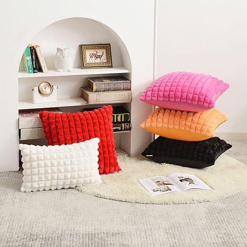 Hohe Qualität: Die Vorderseite der Kissenbezüge ist jeder Kaninchenfellimitat, flauschig und weich, kein Ausfallen. Samt auf der Abseite, super weich und bequem, ohne dass die Farbe abgefärbt. Ein versteckter integrierter Reißverschluss seitlich des Kissenbezugs statt einfaches Gleichsetzen oder Herumlungern der Kisseneinsätze.