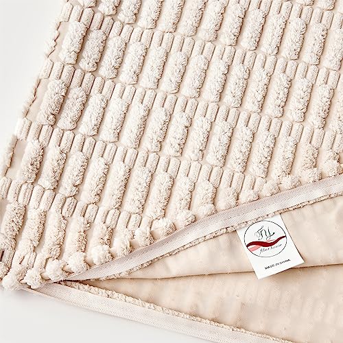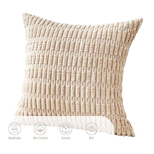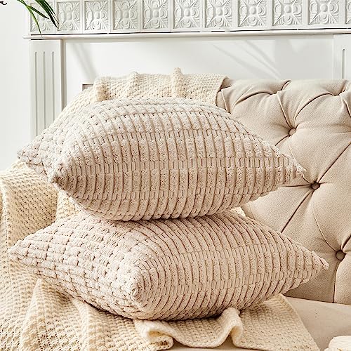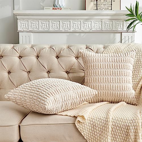 FY FIBER HOUSE 2er Set gemütliche Gestreifter Kordsamt Kissenbezüge Kissenhülle, dekorative quadratische Zierkissenbezüge für Couch, Bett, Sofa, 40x40cm, Cremig