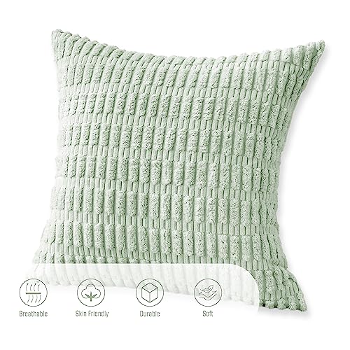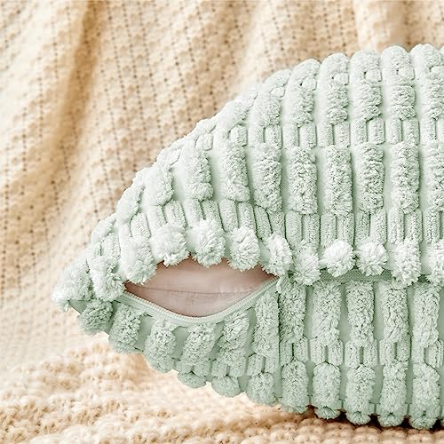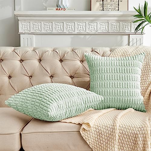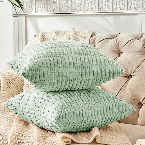 FY FIBER HOUSE 2er Set gemütliche Gestreifter Kordsamt Kissenbezüge Kissenhülle, dekorative quadratische Zierkissenbezüge für Couch, Bett, Sofa, 45x45cm, Salbeigrün