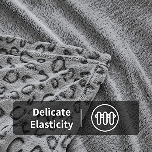 FY FIBER HOUSE Flanell Fleece Decken, extra weiche Flauschige Kuscheldecken, leichte, gemütliche Mikrofaser Sofadecke/Couchdecke für Erwachsene, 230x230cm, Grauer Leopard