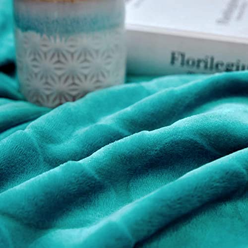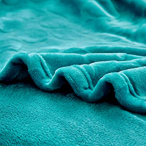 FY FIBER HOUSE Flanell Fleece Decken, Flauschige Kuscheldecken, Superweiche leichte Mikrofaser mit Steindruck für Couch/Sofa (130cm x 150 cm, Türkis)