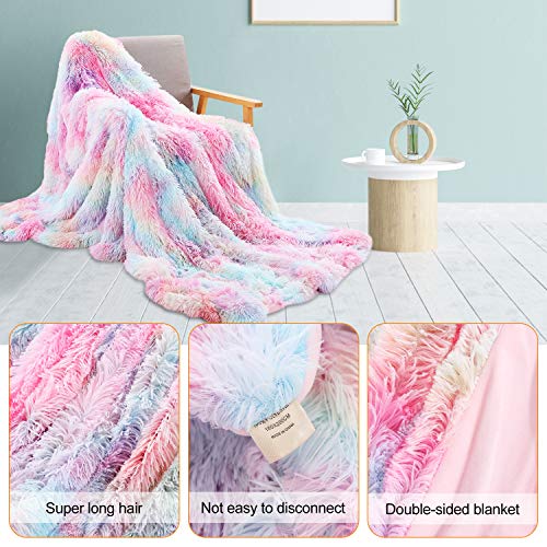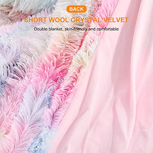 Galatée Elegante, romantische Decke, bequem, Regenbogenfarben, hochwertig, flauschig, Fleece, 160 x 200 cm, Plüsch, weich, warm, geeignet für Sofa/Bett