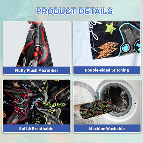Hochwertiges Flanellmaterial — Die Gamepad Kuscheldecke ist nicht mehr da hochwertigem Flanell, einlagig verdickt, weich und bequem, außerordentlich warm.Sehen Sie im Wohnzimmer fern, plaudern Sie mit Freunden oder spielen Sie sogar mit den Kindern, arbeiten Sie eine warme Ambiance.