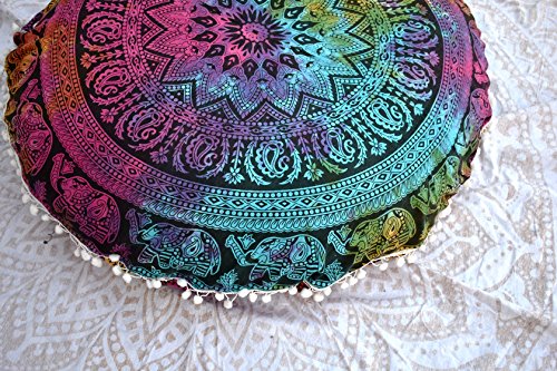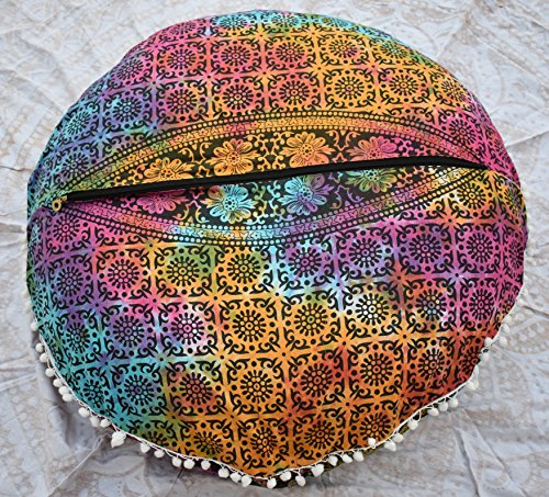 Ganesham Rundes Dekokissen im indischen Boho-Stil, Mandala, Tapisserie, Hippie, Rund, Sitzhocker, Ottoman, Mandala-Bodenkissen, 81 x 81 cm 80 cm multi