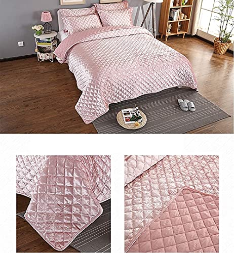 GaRcan Wende-Tagesdecken-Set, dick, doppelseitig gestepptes Bettlaken aus Kunstseide und Baumwolle, einfarbig, bequem, 230 x 250 cm (91 x 98 Zoll), Rosa (weiß)