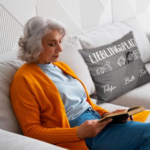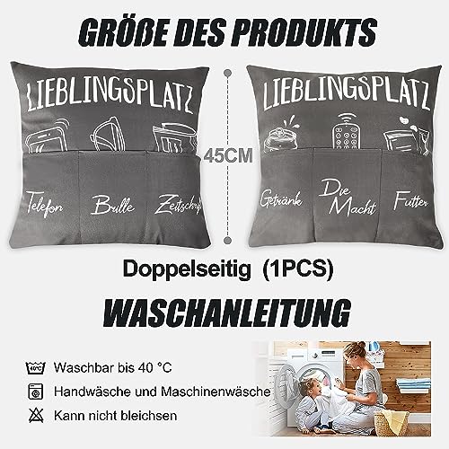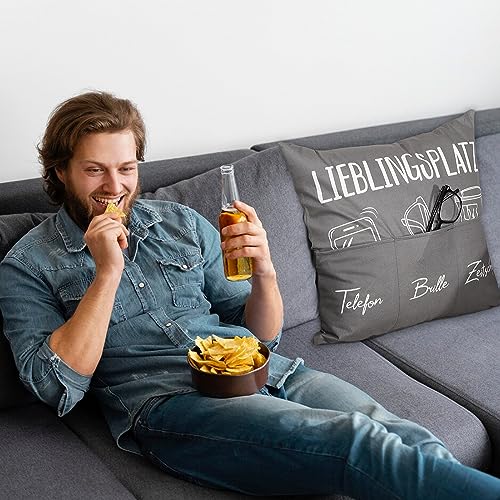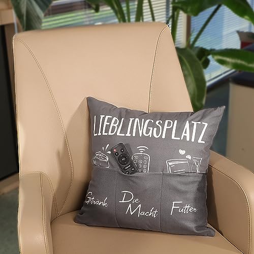 GEBETTER 45 x 45cm Zierkissenbezug mit 6 Taschen Lieblingsplatz Lustige Kissenbezug zum Befüllen Kissenhülle Geschenk Zierkissenhülle zum Geburtstag Dekokissenhülle Weihnachten Sofakissenhülle