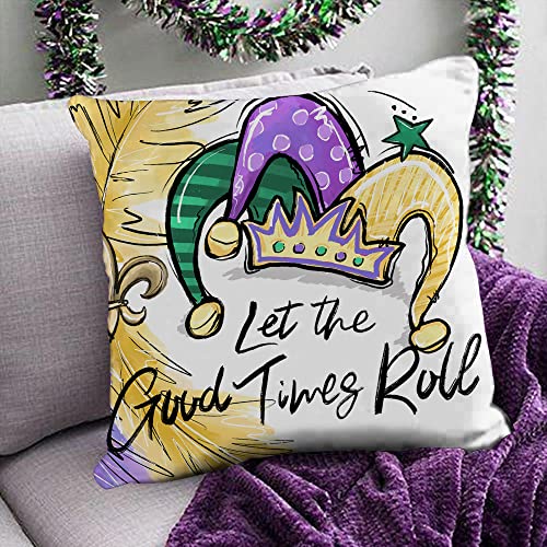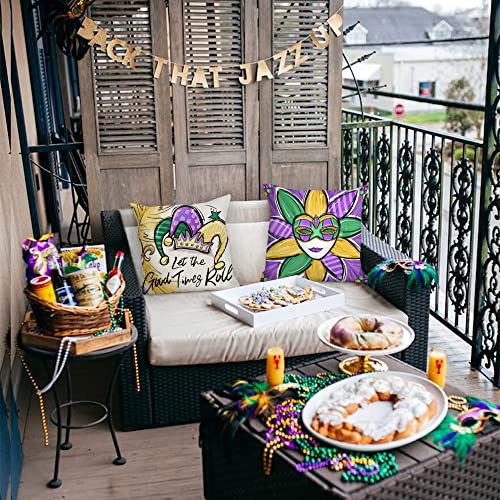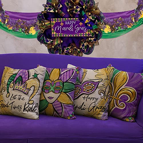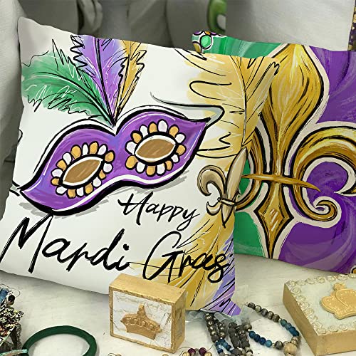 GEEORY Karnevals-Kissenbezüge, 45,7 x 45,7 cm, 4 Stück, für Perlen, Maskerade-Maske, Fleur de Lis, Feder, Happy Mardi Gras Dekor, Dekokissen