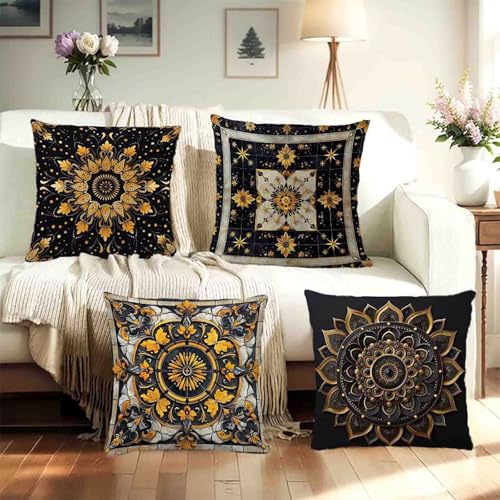 【DOUBLE-SIDED PATTERN】New cushion covers set of 4, size 24x24inches (60x60cm) without filling or lining. Our cushion covers are printed on both sides, so you can place them as you like without having to find the patterned side to decorate, which is more convenient