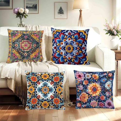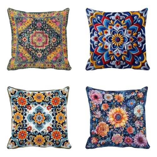 【DOUBLE-SIDED PATTERN】New cushion covers set of 4, size 24x24inches (60x60cm) without filling or lining. Our cushion covers are printed on both sides, so you can place them as you like without having to find the patterned side to decorate, which is more convenient