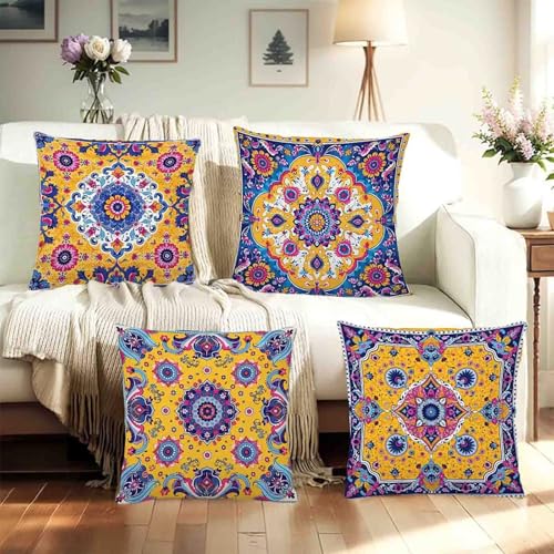 【DOUBLE-SIDED PATTERN】New cushion covers set of 4, size 28x28inches (70x70cm) without filling or lining. Our cushion covers are printed on both sides, so you can place them as you like without having to find the patterned side to decorate, which is more convenient