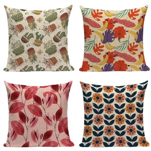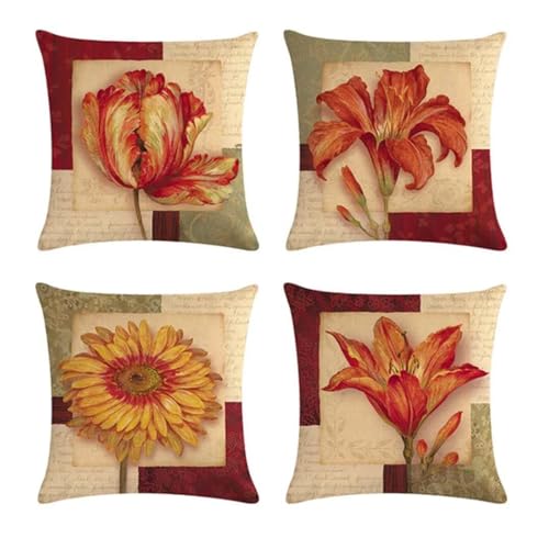 Gelb Kissenbezug 80 x 80 cm Sofakissen Super Weich Kopfkissen 4er Set Blume Kissen Deko Kissenhülle mit Unsichtbarem Reißverschluss Kopfkissen Quadrat Kissen für Garten Schlafzimmer Wohnzimmer R880