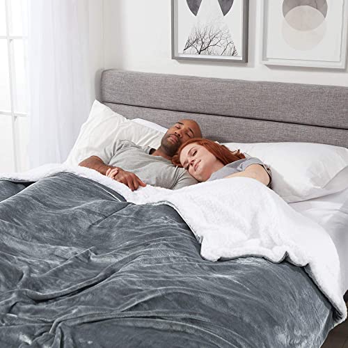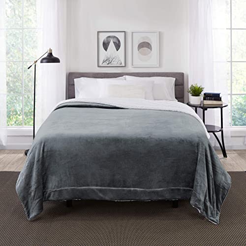 Genteele Sherpa-Decke – 228 x 228 cm flauschige, superweiche Überwurfdecken für Couch, Bett und Sofa – gemütliche, wendbare Fleecedecke-Alternative – grau/weiß