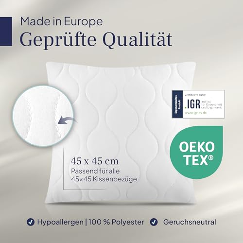 Bezug: 100% Polyester – 2er Set Kissen in der Größe 45×45 cm (perfektes Innenkissen für einen Kissenbezug in der Größe 45 x 45 cm)