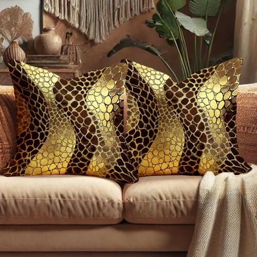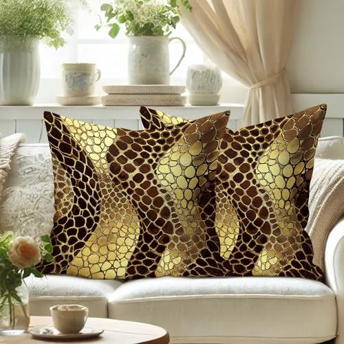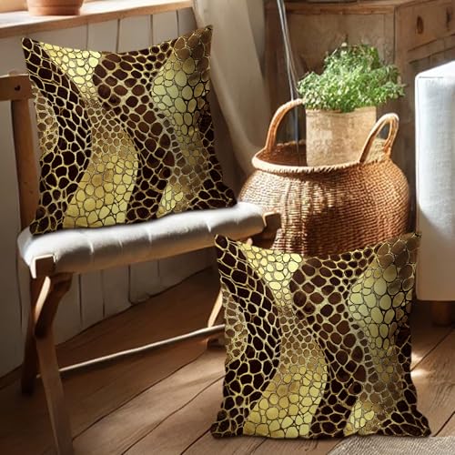 Geometrische Kissenbezüge, 2er-Set, braun und goldfarben, gemustert, dekorative Dekokissen, moderne Herbst-Heimdekoration statt dessen Sofa, Bett, Couch, 40,6 x 40,6 cm