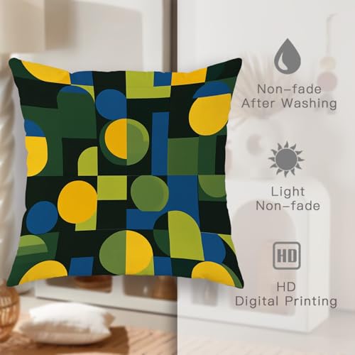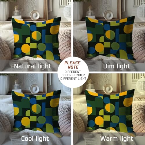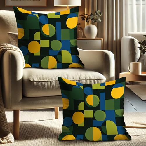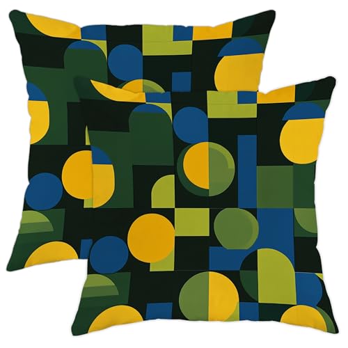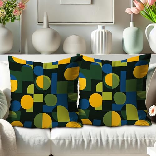Geometrische Kissenbezüge, 2er-Set, dunkelgrüne Kreise und quadratische gemusterte Dekokissen statt Frühling, saisonale dekorative Couchüberzüge, moderne Wohnakzente statt Wohnzimmer, Sofa, Bett, 40,6 x 40,6 cm