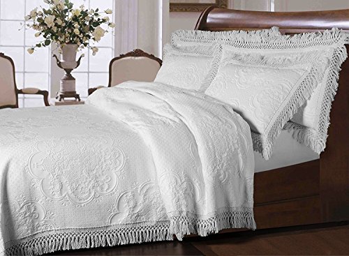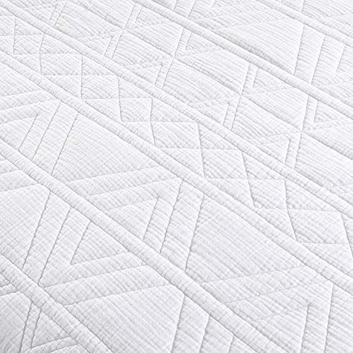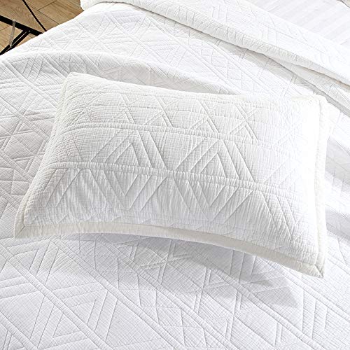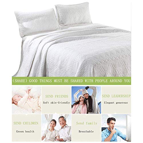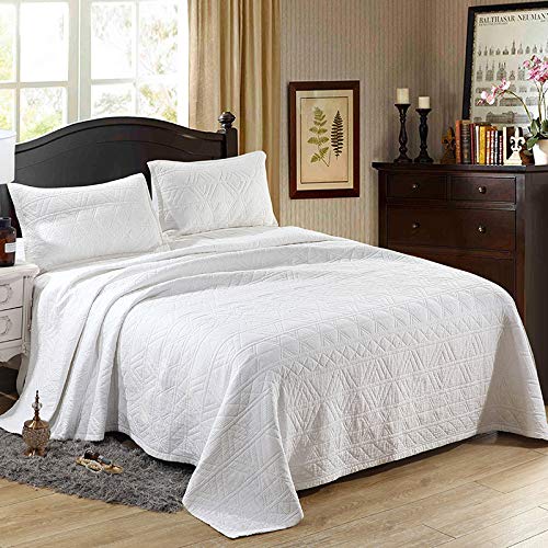 Gesteppte Tagesdecke Bettüberwurf 3 Stück Sommer Quilt Geprägt 100% Baumwolle Doppelbett Decke Bedspread Mit Kissenbezüge Hypoallergene Mehrzweck Bettwäsche,White-Double:223 * 234CM*1+50 * 70CM*2