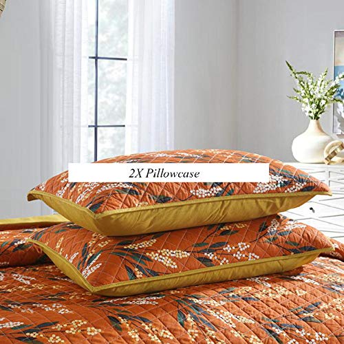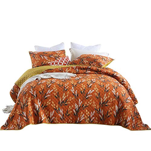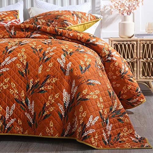 Gesteppte Tagesdecke Twill Blumendruck Baumwolle Doppelbettdecke Bettueberwurf 220X240CM Mit 2 KissenbezüGen 50X70Cm Coole DüNne Decke Im Sommer Waschbar,A