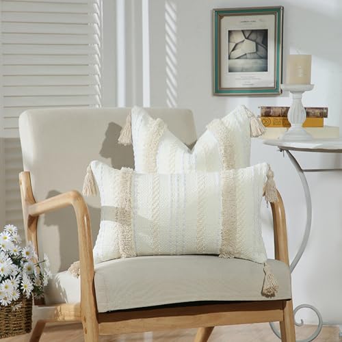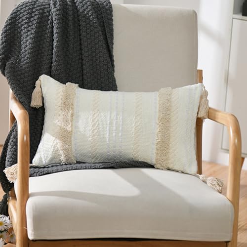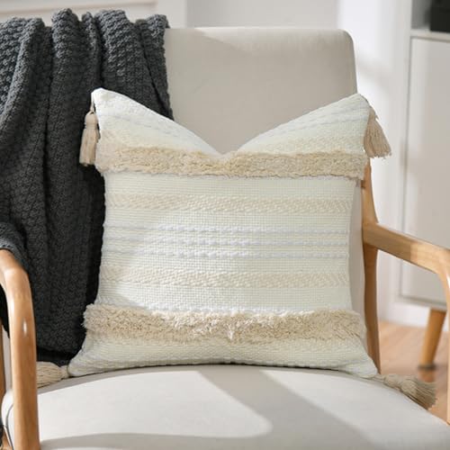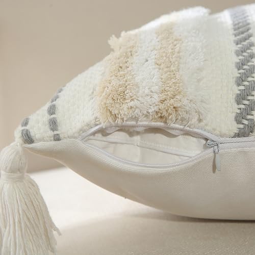 Unsichtbarer Reißverschluss: Diese Kissenbezüge mit verstecktem Reißverschluss für bequeme Reinigung und Austausch. Exquisite Quasten und gewebtes Muster verleihen einen Hauch von modernem Boho-Charme