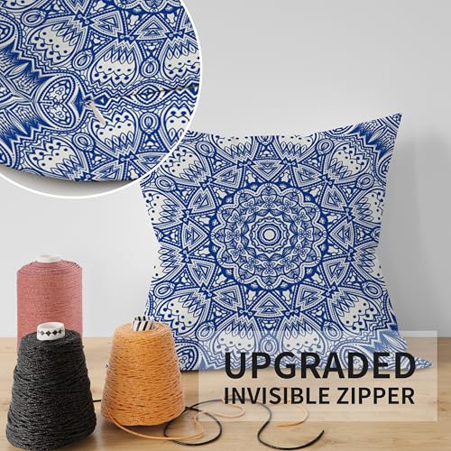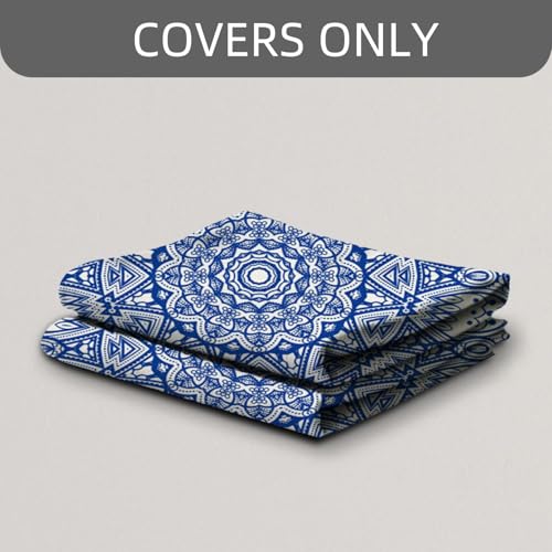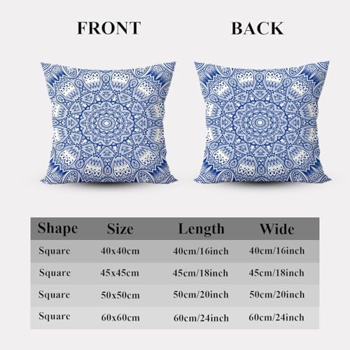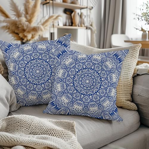 ggaimwf Marokkanische Kissenbezüge 60x60cm Blaue Ethnische Boho-Kissen Indischer Stil Abstrakt Mandala Arabeske Meditation Hippie Modern Kissenhülle werfen für Sofa Wohnzimmer Bett Kissenbezug 2er-Set