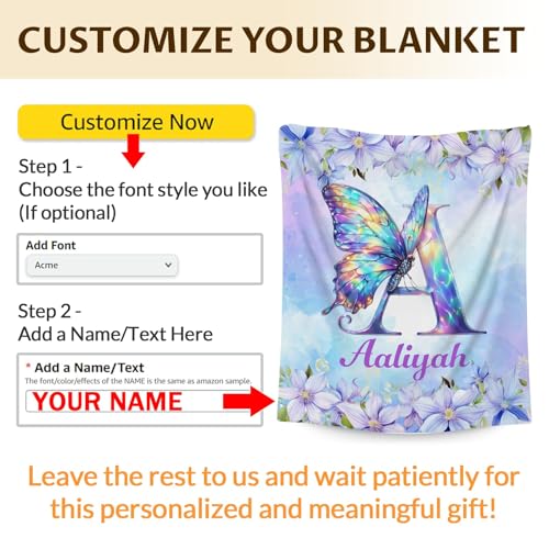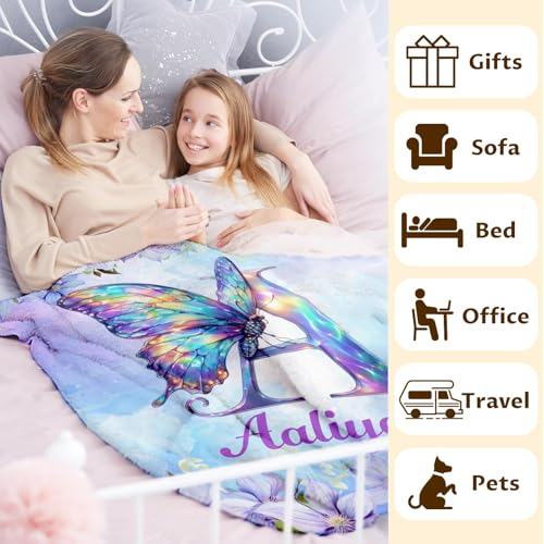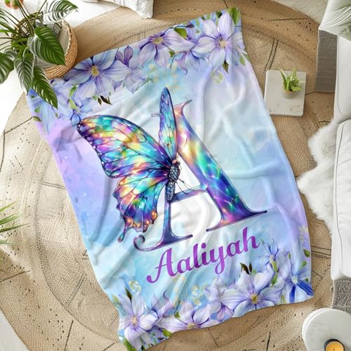 Individuell mit Name & Initiale – Diese Kuscheldecke besticht durch ein stilvolles Schmetterlings-Design und lässt sich mit Initiale und Namen personalisieren – ein einzigartiges Geschenk Statt dessen Mädchen, Pubertierender oder Frauen