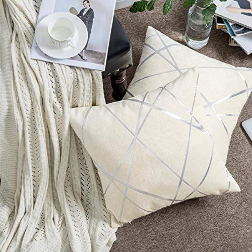 LUXUS DESIGNS: Die Designs mit silbernen Streifen sind ungewöhnlicher als andere gängige Kissenhülle und eignen sich hervorragend zur Dekoration Ihres Wohnzimmer, Schlafzimmer, Sofa und Büro.