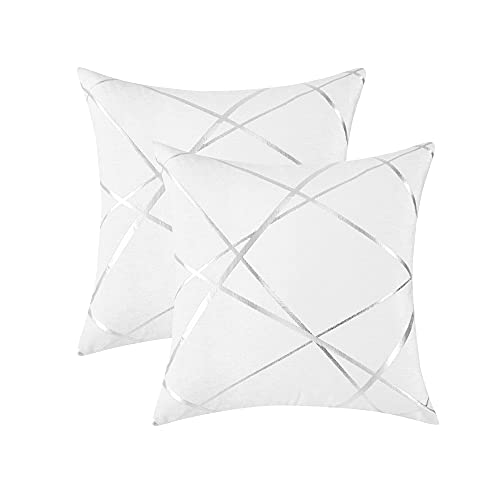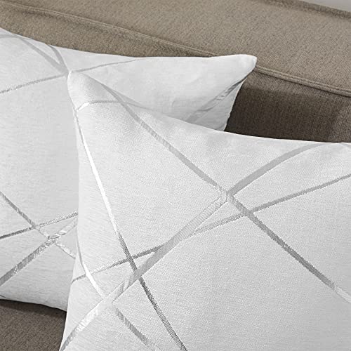 Merkmale und Design: cremefarbene Farbgebung, Größe 45 x 45 cm, zugeschnitten für 45,7 x 45,7 cm große Einsätze. Das Design dieses dekorativen Couch-Kissenbezugs ist auf beiden Seiten mit hochwertigen silberfarbenen Jacquard-Streifen versehen.