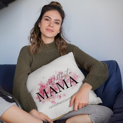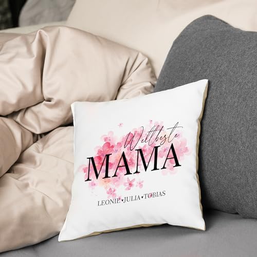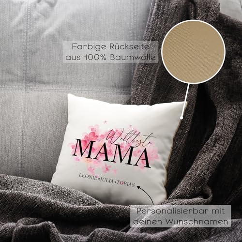 glitzertassen.de® | Weltbeste Mama | personalisiert | Geschenk | Muttertag | Kissen mit Druck | Liebe | Deko Kissen | Fotokissen | Kuschelkissen | Weiß/Mokka