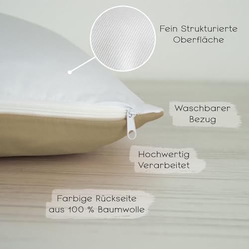 HOHE QUALITÄT – Hochwertiges Kissen, Vorderseite weiß mit hochwertigem Druck, Rückseite farbig – erhältlich in 5 verschiedenen lebendigen Farben. Mit Liebe bedruckt in Deutschland