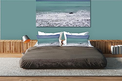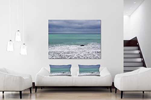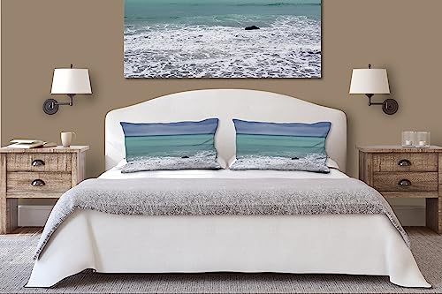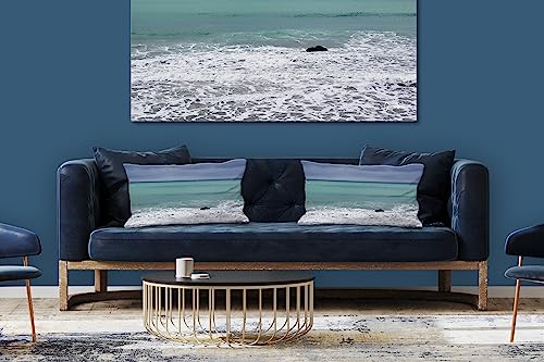 Glücksvilla – Künstler-Foto-Kissen-Hüllen – Kissen-Bezüge Set (2 STK.) 80 x 40 cm, Zierkissen – Deko-Kissen. Motiv: Farbspiele am Meer 1 – Bretagne türkis Atlantik maritim Moderne Fotografie