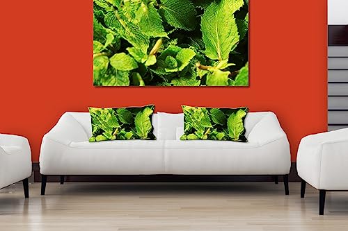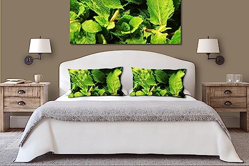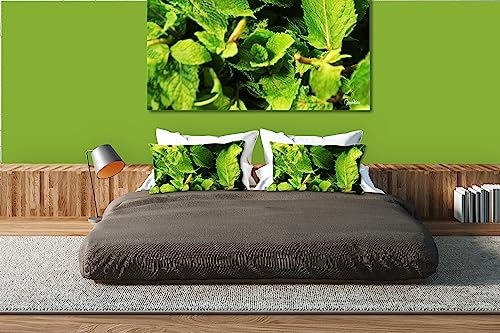 Glücksvilla – Künstler-Foto-Kissen-Hüllen – Kissen-Bezüge Set (2 STK.) 80 x 40 cm, Zierkissen – Deko-Kissen. Motiv: Gemüse 9 – Minze Pfefferminze Kräuter Food Gemüse Markt Essen Fotografie
