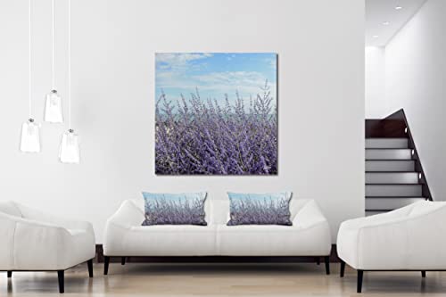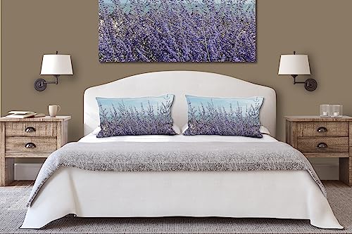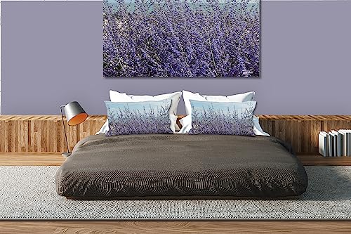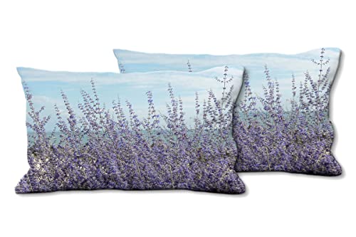 Glücksvilla – Künstler-Foto-Kissen-Hüllen – Kissen-Bezüge Set (2 STK.) 80 x 40 cm, Zierkissen – Deko-Kissen. Motiv: Lavendel vor blauem Himmel – Frankreich Küste Natur Garten Botanik lila x