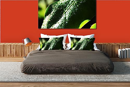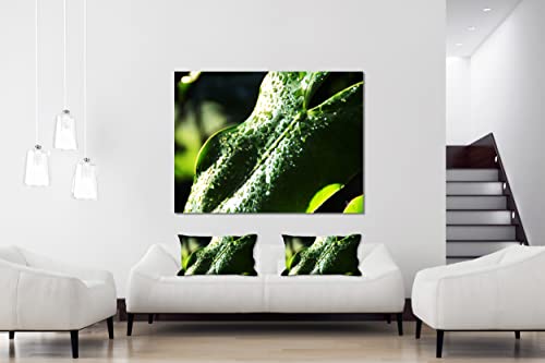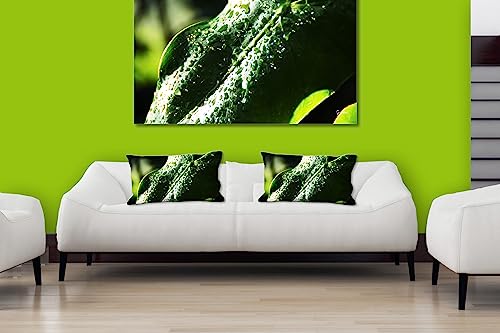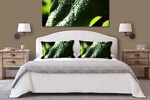 Glücksvilla – Künstler-Foto-Kissen-Hüllen – Kissen-Bezüge Set (2 STK.) 80 x 40 cm, Zierkissen – Deko-Kissen. Motiv: Morgentau – Pflanze Regen Blätter Natur Garten Botanik grün Moderne Fotografie