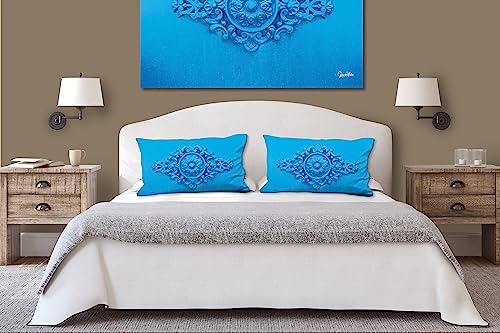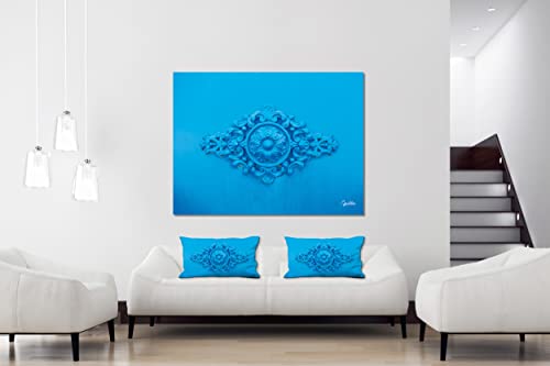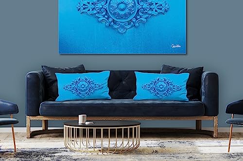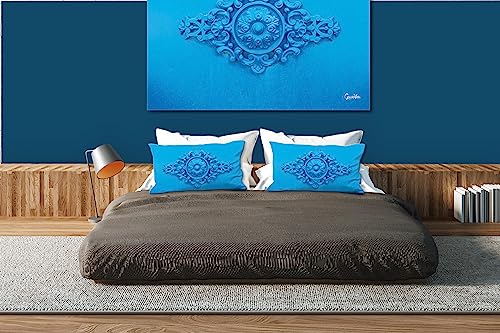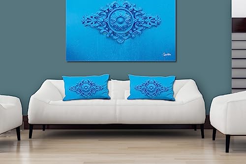 Glücksvilla – Künstler-Foto-Kissen-Hüllen – Kissen-Bezüge Set (2 STK.) 80 x 40 cm, Zierkissen – Deko-Kissen. Motiv: Ornamente 1 – Blaue Verzierung Blume Blüte Tür Metall Moderne Fotografie