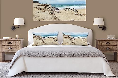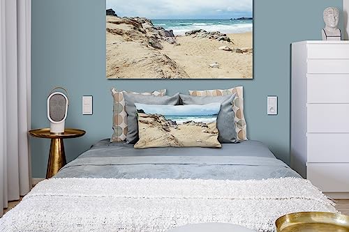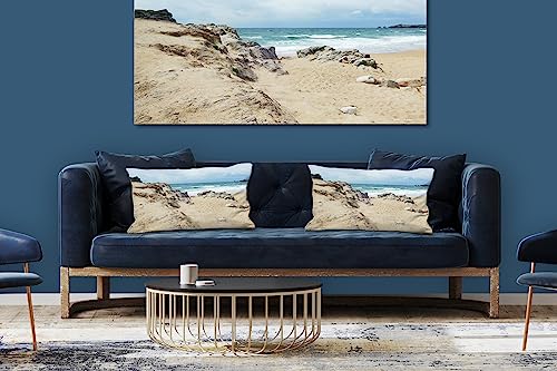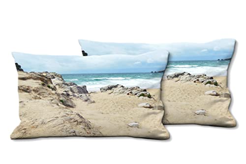 Glücksvilla – Künstler-Foto-Kissen-Hüllen – Kissen-Bezüge Set (2 STK.) 80 x 40 cm, Zierkissen – Deko-Kissen. Motiv: Sehnsucht nach dem Meer 6 – Felsen Klippen Brandung Wellen Sturm Strand