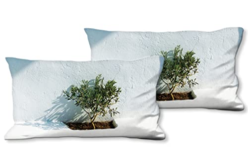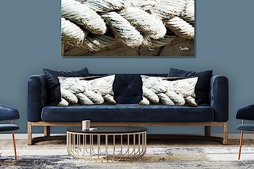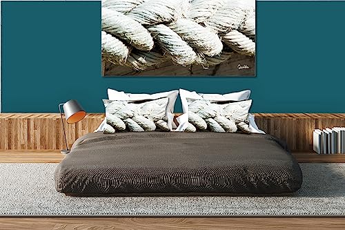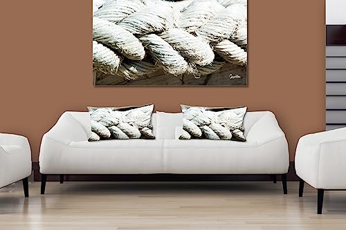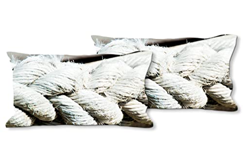 Glücksvilla – Künstler-Foto-Kissen-Hüllen – Kissen-Bezüge Set (2 STK.) 80 x 40 cm, Zierkissen – Deko-Kissen. Motiv: Weiß 9 – Tauwerk Tau Seil Meer Strand Boot Moderne Fotografie