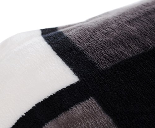 Gemütliches Wohnambiente: Superweiche Wohn- und Kuscheldecke (150 x 220 cm) mit Quadraten in den Farben Anthrazit, Schwarz und Weiß zum Einkuscheln oder als dekorativer Sofaüberwurf