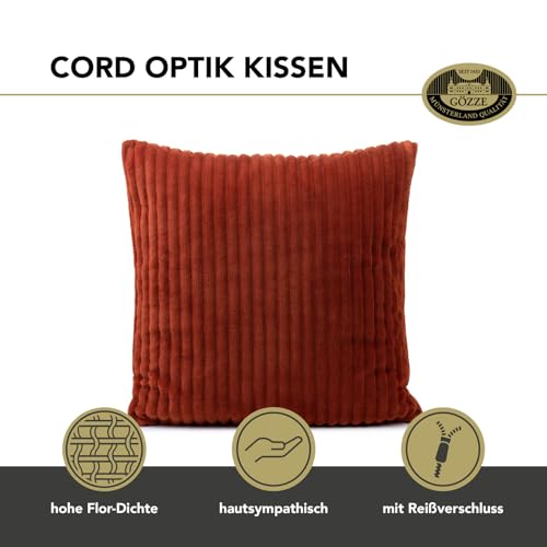 Gözze – Kuschelweicher Kissenbezug in Cord Optik, 2er Set, 50 x 50 cm – Zimt