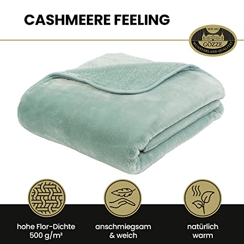 Gözze – Premium Cashmere-Feeling Wohn- und Kuscheldecke, 500 g/m², 180 x 220 cm – Aqua