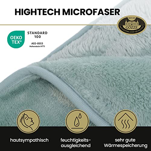 Lieferumfang: 1x Gözze Premium Cashmere-Feeling Wohn- ferner Kuscheldecke, Maße: 180 x 220 cm, Farbe: Aqua, Material: 100% Polyester, Gewicht: 500 g/m², 40128-55-180220