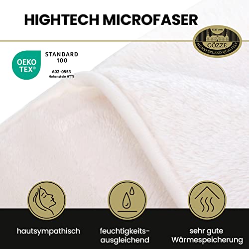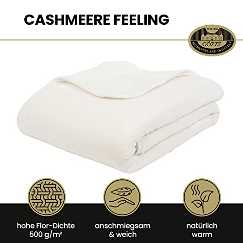 Lieferumfang: 1x Gözze Premium Cashmere-Feeling Wohn- ebenso Kuscheldecke, Maße: 180 x 220 cm, Farbe: Wollweiß, Material: 100% Polyester, Gewicht: 500 g/m², 40128-00-180220