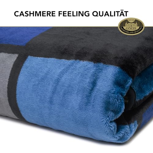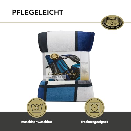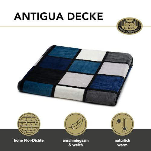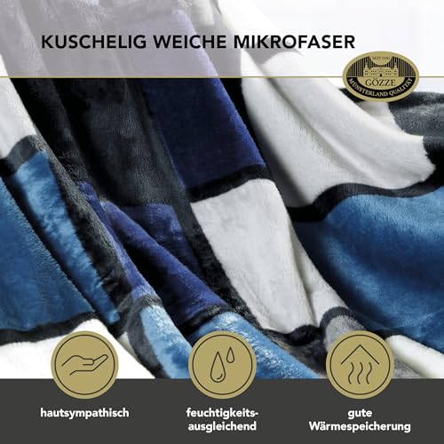 Gözze – Weiche Kuscheldecke, Cashmere Feeling, Hohes Stoffgewicht 500 g/m², Antigua, 150 x 200 cm – Blau/Silber/Weiß