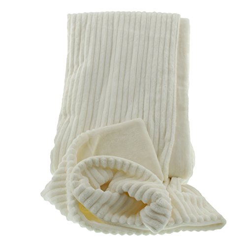 Gemütliches Wohnambiente: Edel verarbeitete Wendedecke in Schnürlsamt Lehre vom Licht (150 x 200 cm) in Wollweiß, Klaglos zum Einkuscheln oder wie dekorativer Sofaüberwurf