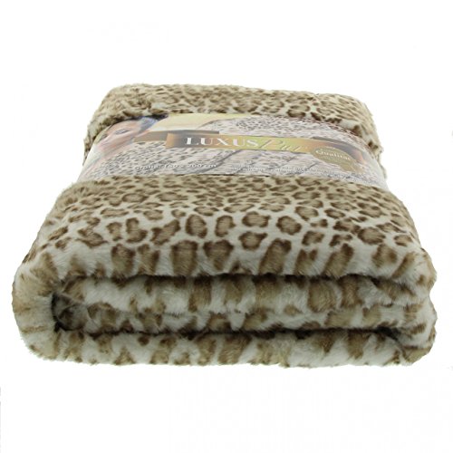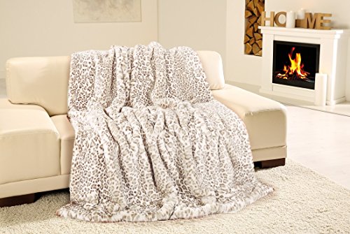 Gözze – Wohndecke, Kunstfell in edler Pelzoptik, Design Schneeleopard, 150 x 200 cm – Weiß/Braun