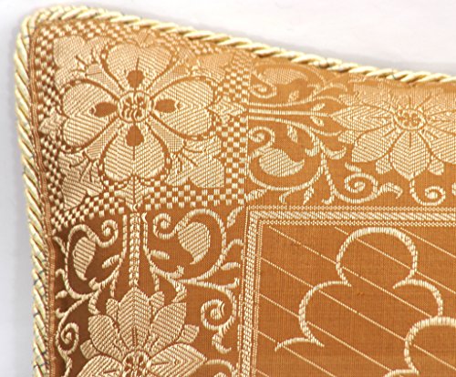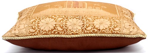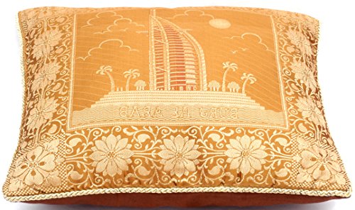 Golden Indische Seide Deko Kissenbezüge mit Umrandung – 40 cm x 40 cm, Extravaganten „BURJ AL ARAB“ Design für Wohnzimmer und Schlafzimmer Dekor, Kissenhülle aus Indien. Angebot gültig solange der Vorrat reicht