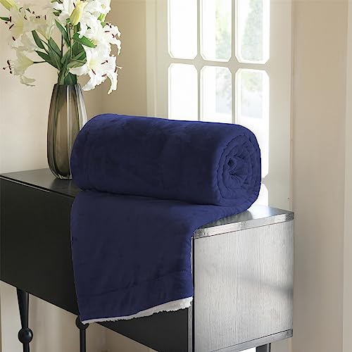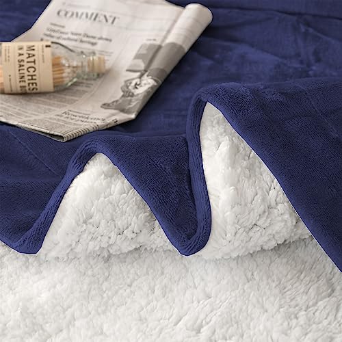 Good Nite Kuscheldecke 130x150cm Marineblau Fleecedecke Wohndecke Decke Sherpa Sofaüberwurf Couchdecke Warm Winter Weich (Marineblau, 130x150cm)