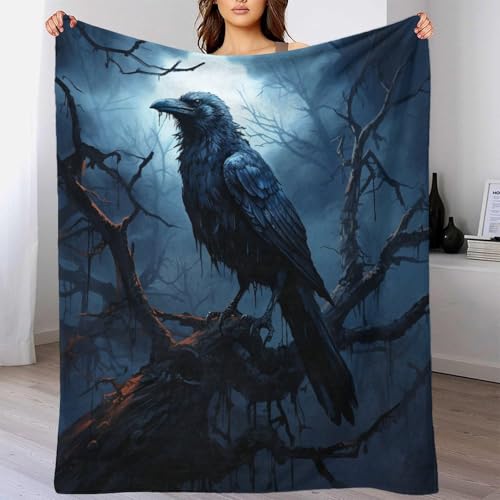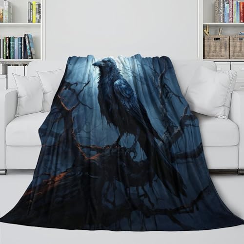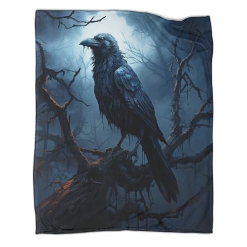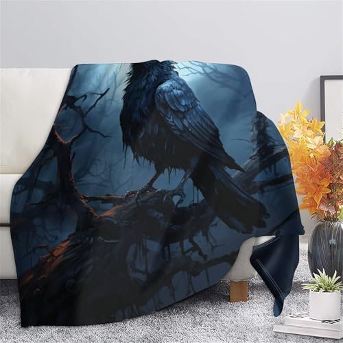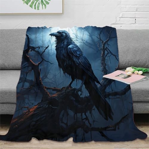 Gothic Crow Couchdecke Sofadecke Fleecedecke 3D Druck Rabe Wohndecke Bett Decken Flauschig Warm Kuscheldecke Tagesdecke Weichen Flauschig Für Mädchen Jungen 60x80inch(150x200cm)