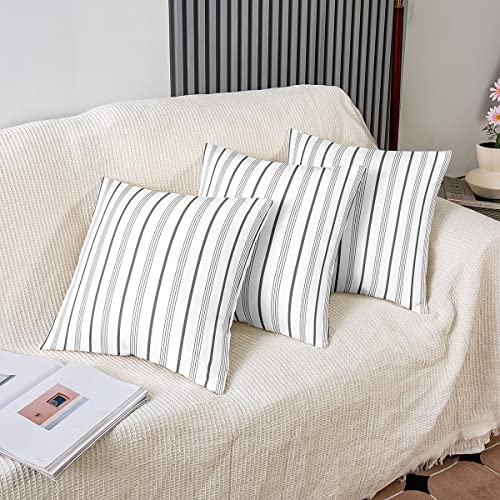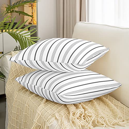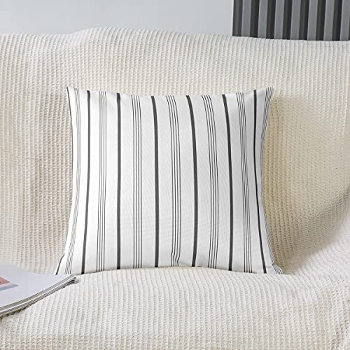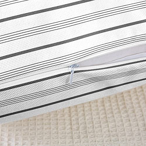 Graue Weiße Streifen Kissenbezüge 40×40 Satz von 2 Geometrische Gestreifte Dekorativer Kissenbezüge Bauernhaus Linien Streifen Deko Accent Kissenbezüge Rustikale Abstrakte Deko Accent Kissenbezüge