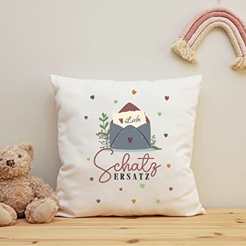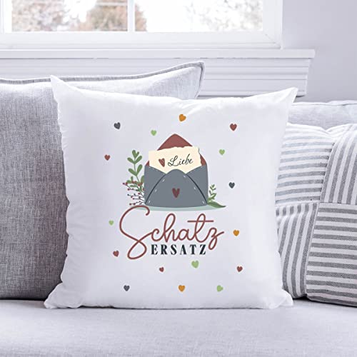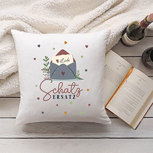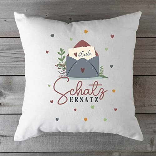 GRAVURZEILE Kissen mit Spruch – Schatz Ersatz – Herzliche Geschenke – Bedrucktes Kissen mit Liebesbrief Motiv – Geschenk für Sie & Ihn zum Geburtstag Valentinstag Weihnachten – Größe mit Füllung