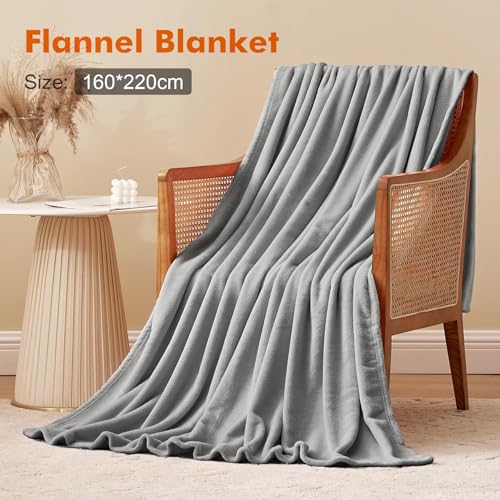 GRIFEMA Kuscheldecke 160×220 cm, Flauschige Fleece-Decke, Warme und Weiche Wohndecke für Sofa, Couchdecke im Winter, Überwurfdecke Grau